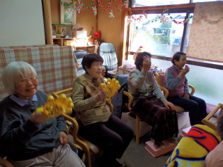 利用者様は各自「タンバリン」「鈴」を持ちリズムに合わせノリノリで歌に参加!