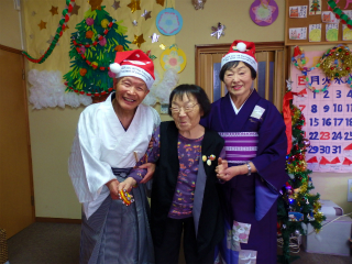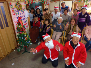 最後は利用者さま・出演者・職員も加わり記念撮影。サンタさんも登場しとっても楽しい時間を過ごすことが出来ました[emoji:e-489]