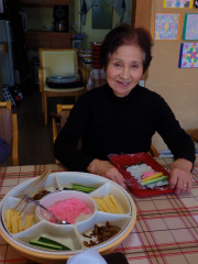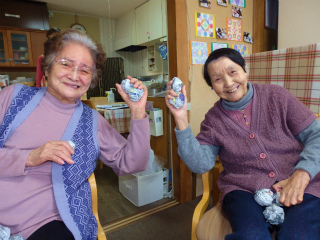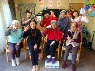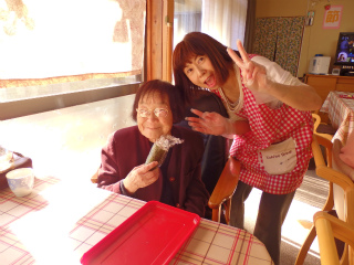 節分会♪ 2015 2/04 まんま日記 2015年2月4日 年が明けて、ひと月が経ちました! インフルエンザが猛威をふるっていますが、 皆様お元気でいらっしゃいますか? まんまでは毎年恒例の節分会が 威勢よく催されました まずは恵方巻きづくり♪ 皆様、手際が良くて・・・ あっという間にいただきま~す♪ 恵方巻きを食べてエネルギー満タン!! 鬼は~外っ!! 皆様の元気な豆まきで改心した鬼と 仲良く記念撮影 梅の開花が楽しみな 白尾でした まんま日記