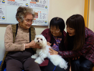 まんま歩行練習 2015 3/17 まんま日記 2015年3月17日 今日は暖かくなりましたね。 気温も20℃を超えたとか・・・。 梅や桃があちこちできれいに咲いて 気分も 「あなた何てお名前?」 皆さん、優しい笑顔で話しかけていらっしゃいましたね。 最初は「犬は苦手だから・・・。」 と遠くで見ていた方も・・・ ご自分から、抱っこされて、 「かわいいね~。」と。 ひざの上で皆さんの顔をじ~と見ている ワンちゃん達に、とっても癒されました まんま 宮崎でした まんま日記