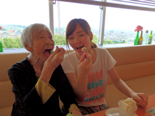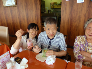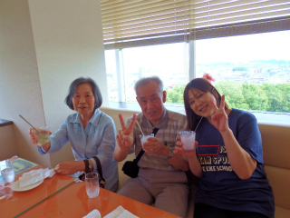 皆さん、歩行練習の後はニコニコ笑顔でまんまへ