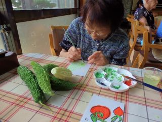 今回は、夏らしくゴーヤとトマトの絵ですよ。