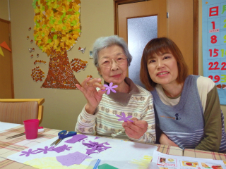 11月の個人作品の花びらを切っている様子です