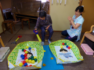 「織姫の箱からボールを掴んでは、彦星の箱へ。