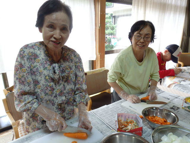 「秋といえば・・・」「栗きんとん」「栗~」と、利用者様の頭の中は、栗一色になりました~![]()