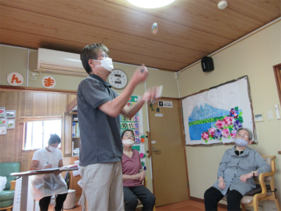 と3個のお手玉投げを披露してくれました![]()