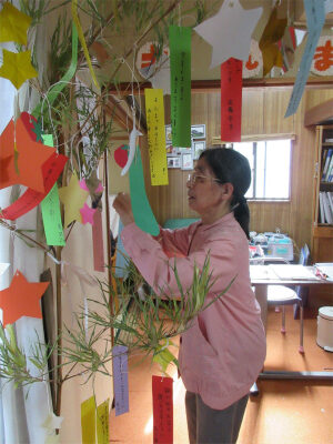 短冊に願い事を書いて笹に飾りました![]()