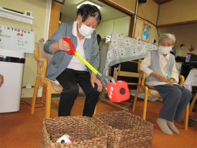 ぬいぐるみやサイコロなど、いくつカゴに移動できるか競うゲームをしました![]()