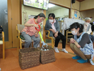 午後のレクリエーションでは、UFOキャッチャーゲームで皆様と楽しみました![]()