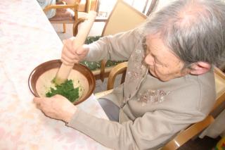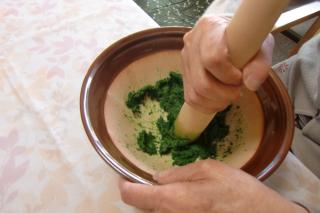よもぎを細かく磨るのが大変でした。