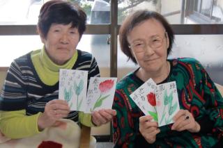 絵手紙の先生が、今日は、チューリップを持ってきてくださいました。