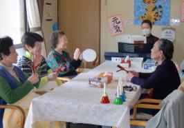 今日まんまでは、音楽療法を取り入れた「音楽遊び」をしました。