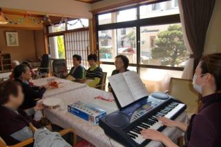 中村さんのピアノのメロディーに合わせ、皆さんでまず「おぼろ月夜」を歌いました。