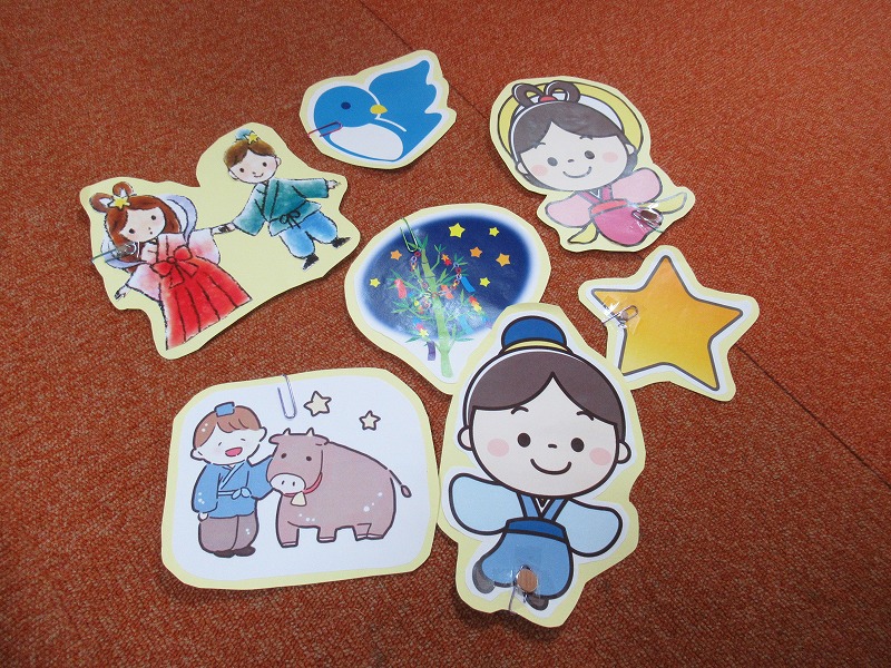 かけながら、「彦星様」「織姫様」「牛飼いさん」「☆」「笹の飾り」あと・・・