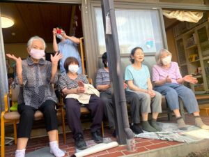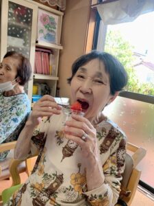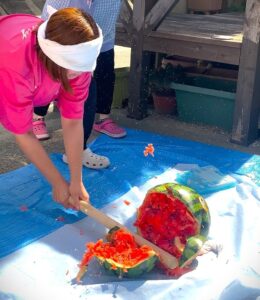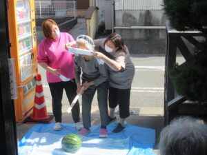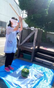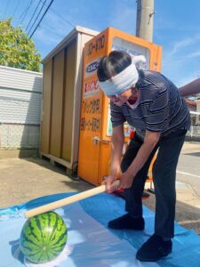 今日は天気も良く、少し風があり、涼しかったので皆さんと外でスイカ割り🍉を