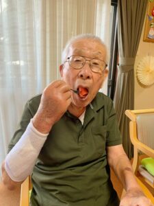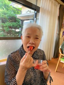 そして、皆さんと楽しくスイカ割りが終わり、お部屋に戻り涼しい部屋の中で