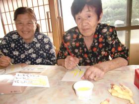 新生姜おいしいよ(^^) 2010 10/03 まんま日記 2010年10月3日 今回は生姜を題材に絵手紙を描きました。 先生が色の塗り方や一言メッセージを教えてくださって、和やかで楽しい教室です。 「さあ、おいしく描けましたか?」 「まだまだよ。竹ちゃん」 できあがるまで、みなさんと生姜メニューについてお話して過ごした絵手紙教室でした。 以上、手作りジンジャーエール作ろうよとワイワイ騒ぎながらカメラマンしていた 竹内でした。(^。^) まんま日記