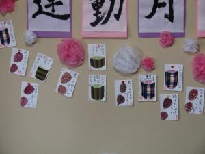 皆さんが描いた絵手紙を並べて、観賞会です。