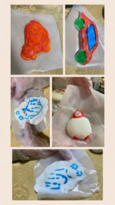 「私は、たぬきにした」「僕は、車にしたよ」と選んだ型を教えあっていました。