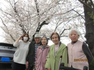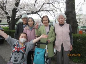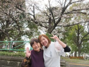 吉岡公園にもお散歩へ行き、満開の桜の下で記念撮影![]()