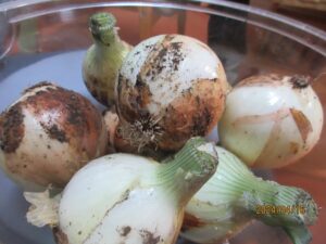 まんまのミニ畑で収穫したグリンピースと新玉ねぎです![]()