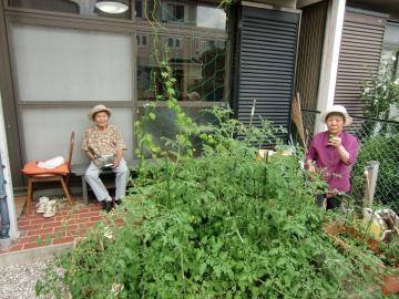 と車を降りてから部屋へ入る間に皆さん畑を眺めて、話しています。