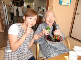 皆さんと収穫したナス、ピーマン、ミニトマトは、
