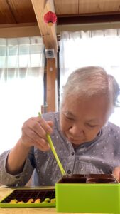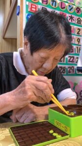 つるつる滑るお豆ちゃんを上手に別のトレーに1分間に
