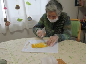 先日、なづなの利用者様と一緒に昼食作りをしました。
