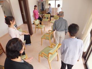 まずは、椅子に座ったままで準備体操ゆっくり無理のないように