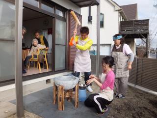 餅つきには職員の大学生の息子さんが