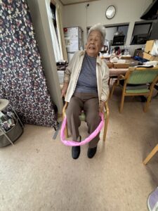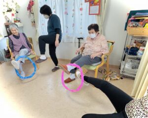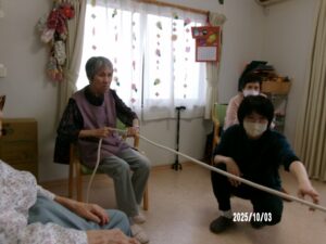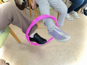 お次は足に輪を引っかけて、隣の方に渡していきます。