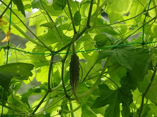 どんどん生長しています。小さなゴーヤがいくつも出来ていますよ。