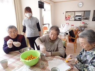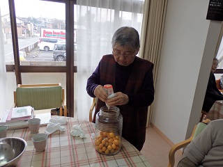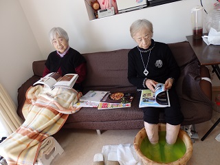 なづなの日常 2015 3/04 職員の日記 なづな日記 2015年3月4日2026年3月30日 とある日、ご利用者様が 「家の庭からとってきたで、あげるわ~」と ゆずやきんかん、おみかんをくださいました たくさんあったので、『ゆずジャム』にしてみました きんかんは、はちみつ漬けに 『この乾燥する季節、のどにいいんですよね~』 午後のひととき… 『足湯』や読書でリラックスタイムです。 パソコンで毎日、日記をつけてみえる方も 皆様それぞれ、ご自分の時間を楽しまれています。 『なづな』の日常でした。 松本 職員の日記 なづな日記