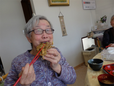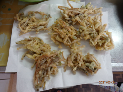 袴がとれたところで続いては、調理、、、卵とじかと思いきや施設長より「天ぷら」を作るように指令が出ました