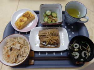 先月はなんと「具だくさん炊き込みご飯」「サバの煮つけ」「厚焼き玉子」「きゅうりの酢の物」