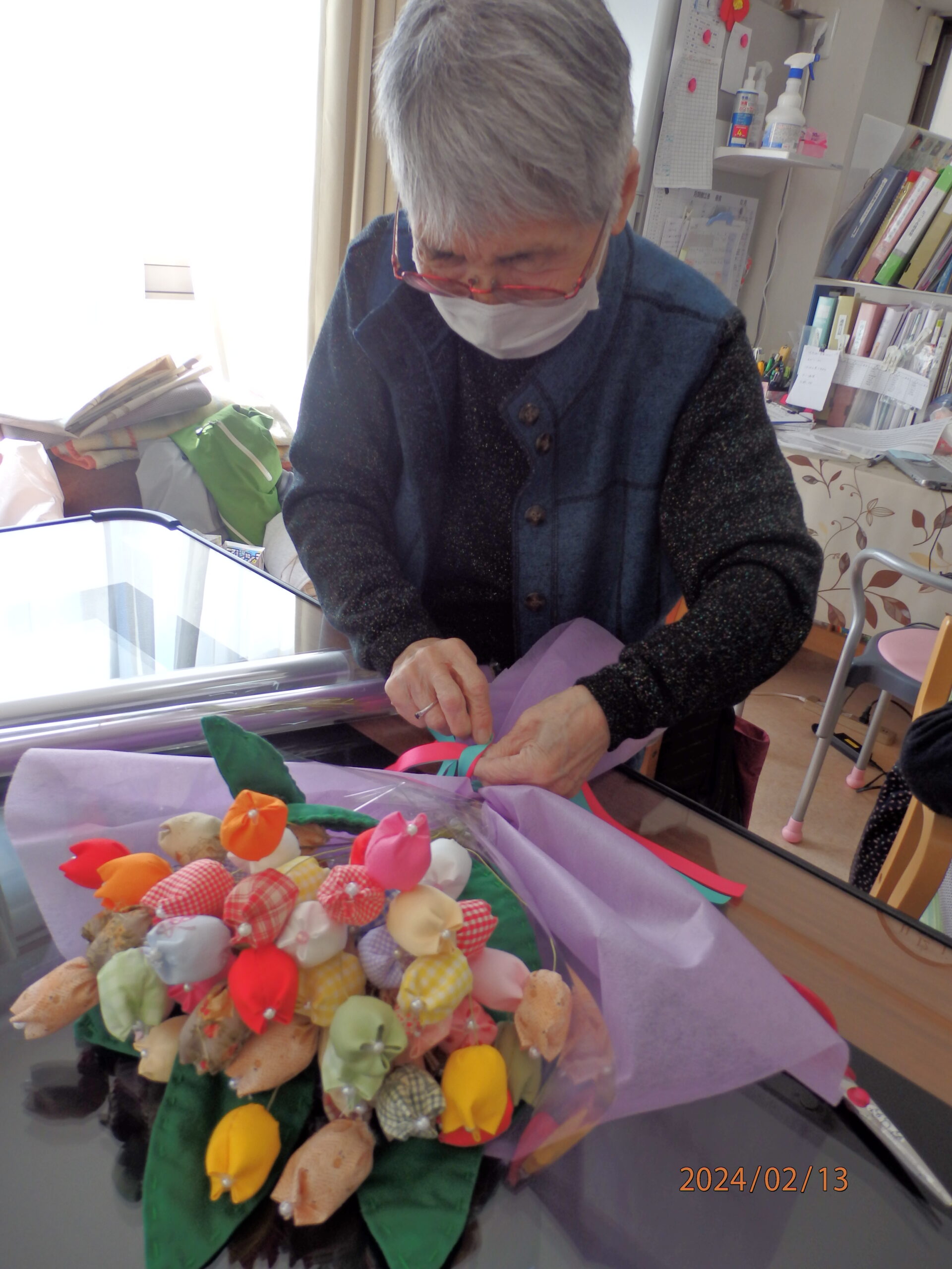 チューリップの花束は利用者様が1本1本心を込めて縫って下さいました![]()
