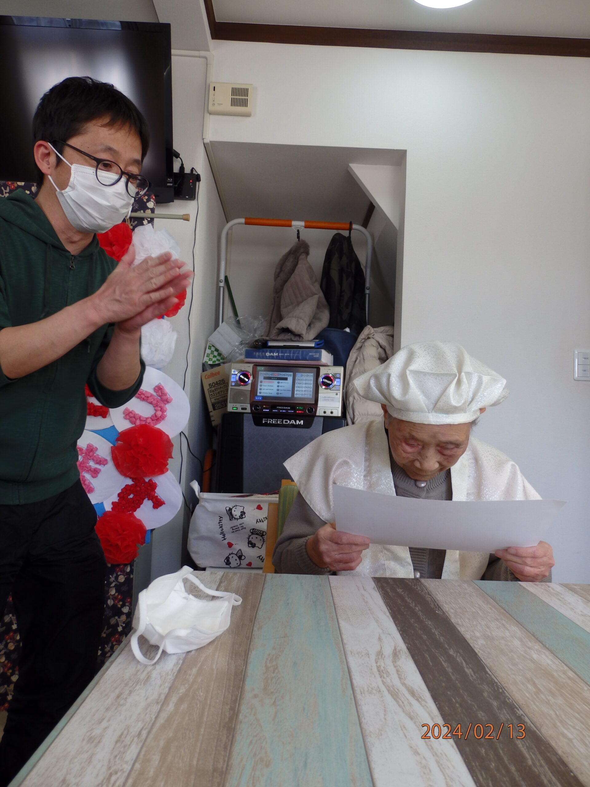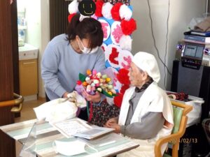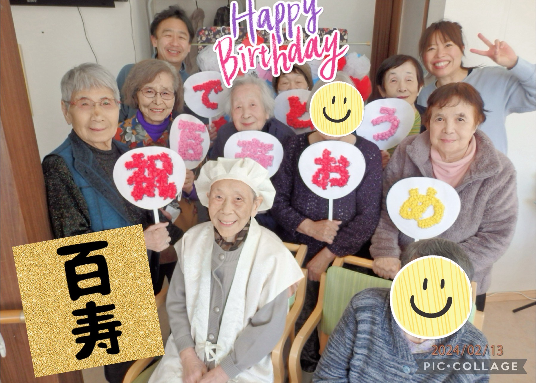 先月、なづなで百寿を迎えられました利用者様のお祝い会をさせて頂きました。