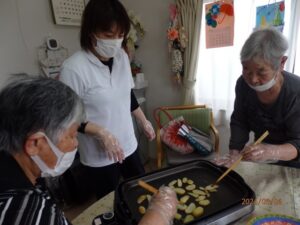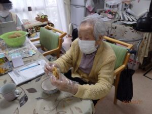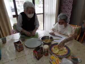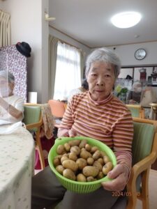 収穫したじゃがいもを使って利用者様とおやつ作りをしました。