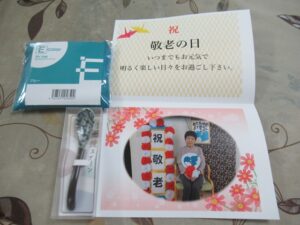 エコバック、有田焼スプーン、写真付き敬老カードです![]()